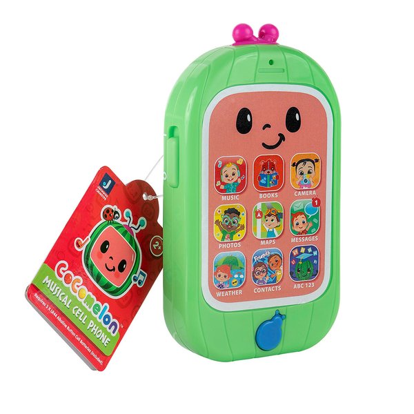 Hora de fazer algumas ligações com o Celular Musical Cocomelon! Este brinquedo tem a aparência de um celular real e é perfeito para as crianças brincarem. Leve e fácil de usar, o celular musical Cocomelon tem o tamanho adequado e está pronto para aventuras! Pressione a joaninha para ativar o toque, o tom de discagem, um clipe da "Canção ABC" e outros sons divertidos! O adesivo da tela do telefone apresenta personagens Cocomelon, como Cece, YoYo, TomTom, Bella, Cody, Nina e, claro, o próprio personagem principal, JJ! O Musical Cell Phone Cocomelon também pode ajudar a melhorar as habilidades motoras. A brincadeira vai ficar muito mais divertida com o Musical Cell Phone Cocomelon!