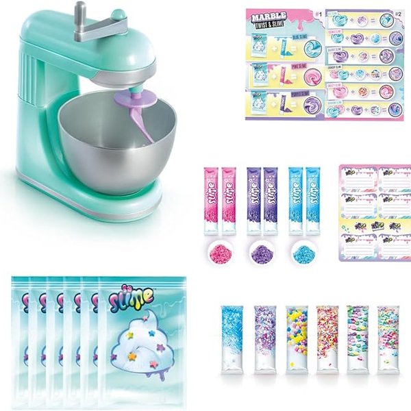 Crie slimes incríveis e coloridos de mármore de forma divertida e fácil! O Slimelicious Mixador Estudio da Fun é a forma perfeita de criar suas próprias criações de slime de forma criativa e única. Com este mixer, você poderá misturar slimes pré-fabricados, corantes e aditivos para criar uma variedade de misturas coloridas e divertidas. Este kit inclui tudo o que você precisa para se tornar um mestre na criação de slimes. Configure sua estação de trabalho e misture até dezesseis mini slimes dentro do mixer de slime.